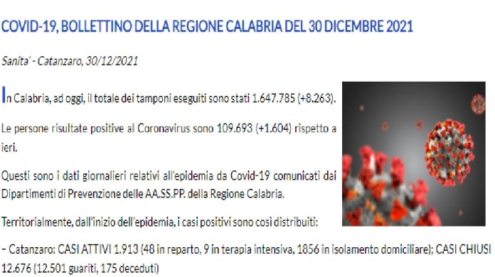COVID-19: IL BOLLETTINO DELLA REGIONE CALABRIA DEL 30 DICEMBRE 2021