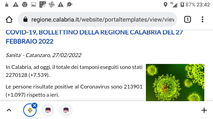 COVID-19: IL BOLLETTINO DELLA REGIONE CALABRIA DEL 27 FEBBRAIO 2022