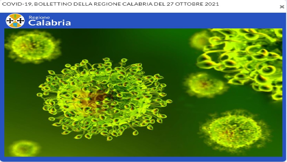 – Cosenza: CASI ATTIVI 1098 (24 in reparto, 0 in terapia intensiva, 1074 in isolamento domiciliare); CASI CHIUSI 26915 (26261 guariti, 654 deceduti);