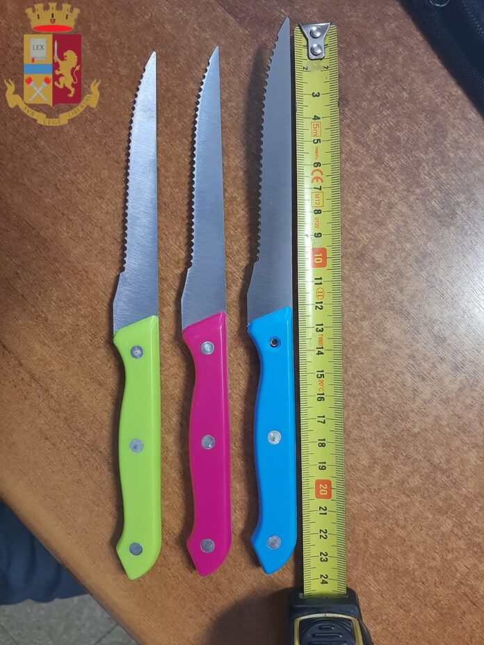 Ieri pomeriggio invece, gli agenti della Polizia di Stato del commissariato Esquilino e Viminale, sono intervenuti in via Filippo Turati per la segnalazione di una aggressione nei confronti di una donna. Sul posto, la vittima, una donna di 33 anni, in evidente stato di shock, è stata fatta accompagnare in ospedale tramite autoambulanza mentre, poco distante, è stato rintracciato l’aggressore. S.E., italiano di 48 anni, con vari precedenti di polizia, alla vista degli agenti, con 3 coltelli da cucina in tasca, ha iniziato a minacciarli estraendone uno. Dopo una breve trattativa l’uomo ha lasciato cadere a terra i 3 coltelli, ma ha continuato ad aggredire e a minacciare verbalmente gli operatori. Durante le fasi di identificazione, improvvisamente, il 47enne ha estratto dalla tasca dei pantaloni un ulteriore coltello a serramanico puntandolo verso i poliziotti che, per bloccarlo, sono dovuti ricorrere all’utilizzo dello spray al peperoncino. Dopo una breve colluttazione è stato disarmato e accompagnato negli uffici di polizia dove è stato arrestato per resistenza, lesioni, minacce a Pubblico Ufficiale, nonché per porto di armi od oggetti atti ad offendere.