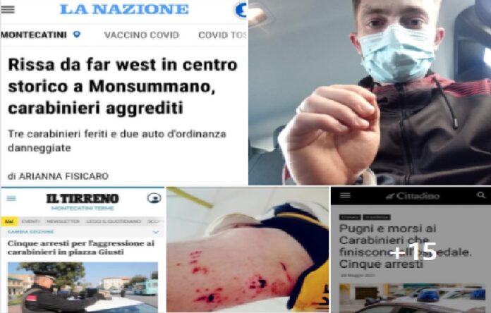 • mentre mio figlio continuava a ripetere di non essere in possesso dei documenti, veniva colpito dagli stessi Carabinieri con la paletta dell’Alt in dotazione, preso a pugni e buttato per terra, subendo un abuso di potere. Ed è così che inizia questo gravissimo pestaggio da parte dei Carabinieri della stazione di Monsummano Terme, alla presenza della sua ragazza, per poi continuare nei confronti di tutti gli altri miei parenti che sono intervenuti, per calmare, se così possiamo definire, questi personaggi in divisa. Non contenti di quanto accaduto pochi minuti prima con mio figlio Agatino, hanno iniziato addirittura a picchiare le donne, buttandole per terra ed usando lo spray al peperoncino, arrecando danni alla giovanissima ragazza di mio figlio Jonathan, già affetta da asma, con impossibilità di respirare. Sono stati i Carabinieri che hanno picchiato selvaggiamente, ed hanno arrestato illegalmente, i miei 2 figli, le loro ragazze, e la loro mamma. Denuncerò tutta la stazione dei Carabinieri, sia come genitore e congiunto, ma anche a nome dell’Associazione Sicilia Risvegli Onlus, e Vittime della strada, da sempre impegnate contro gli abusi;