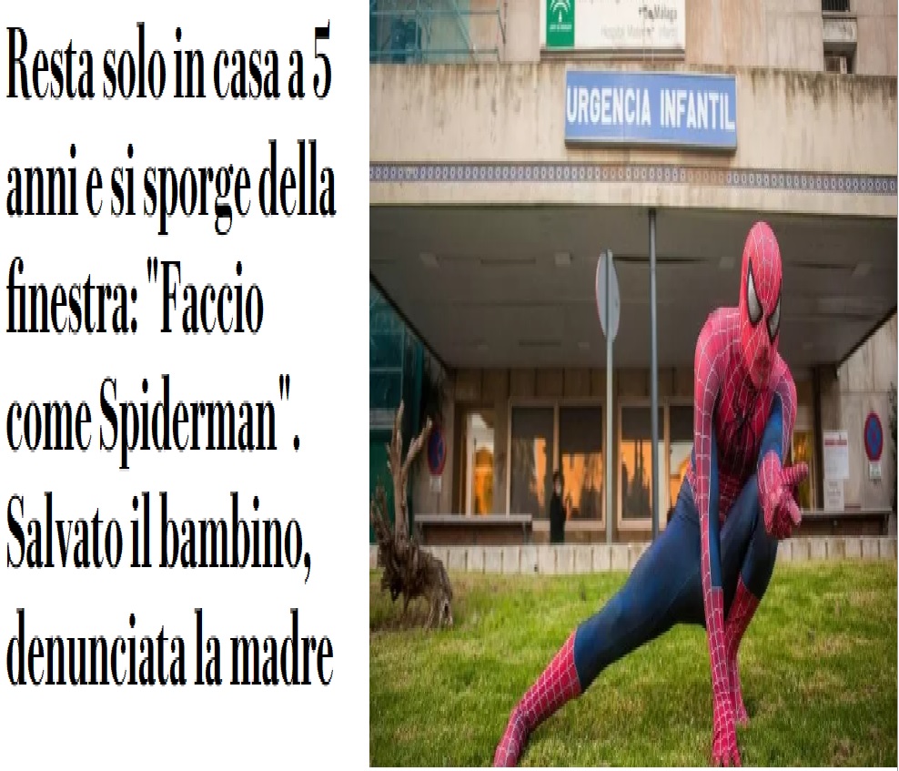 Erano le 17 di martedì pomeriggio. Gli agenti hanno trovato il bambino con in mano un peluche dell’eroe della Marvel, la tv era accesa proprio sul canale del cartone animato dell’Uomo Ragno. Sotto al davanzale della finestra il bambino aveva spostato un comodino per riuscire ad arrmpicarsi e sporgersi, forse nel tentativo di emulare il suo supereroe. Tramite le utenze domestiche gli agenti hanno rintracciato la madre, una donna di origini peruviane di 44 anni. Che ha raccontato che “era la prima volta che lo lasciavo da solo. Dovevo accompagnare l’altra figlia di 7 anni in piscina e ho visto che lui dormiva sereno e non volevo svegliarlo”. La donna è stata denunciata per abbandono di minore e il bambino è stato affidato al padre, un connazionale di 50 anni che è stato rintracciato al lavoro.