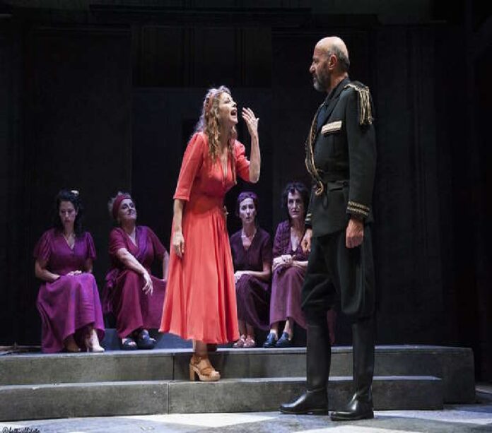 Lo fanno rinnovando la loro più che trentennale collaborazione, simbiosi, sintonia, arricchendo il loro comune percorso attraverso gli ultimi decenni della scena teatrale italiana, con la forza, la misura, la dedizione, l’impegno che ha contraddistinto ogni loro spettacolo. Lo fanno grazie alla riscrittura del testo classico da parte di Ugo Chiti, alla sua capacità di interpretare la classicità con occhio contemporaneo e insieme rispettoso dell’originale, con la sua lingua sapida, ricchissima che sembra fatta apposta per rendere l’originale nella sua interezza, reinterpretando quelle parti rese di difficile comprensione dal tanto tempo trascorso. Lo fanno avendo trovato in Amanda Sandrelli una protagonista perfetta per la commedia di Aristofane.