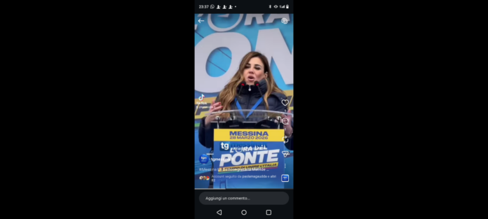 “L’Ora del Ponte: piazza Municipio Messina”. Sulla sua omonima Pagina Facebook ‘Matilde Siracusano’, lo ha scritto la sottosegretaria di Stato messinese, del Governo guidato dalla premier Giorgia Meloni, a margine della manifestazione tenutasi oggi dopo le ore 16.00.