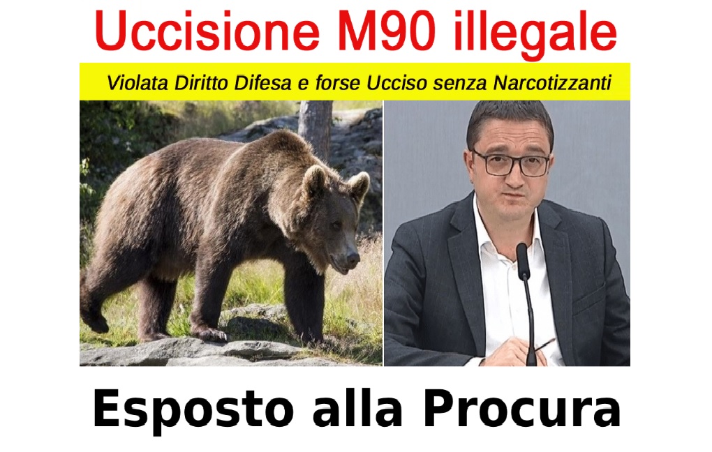 L’Orso M90 è stato abbattuto dalla Provincia di Trento pochi giorni fa perchè ritenuto pericoloso, dal canto suo, il Partito Animalista Italiano non ci sta. Con il proprio presidente avv. Cristiano Ceriello ha presentato esposto alla Procura della Repubblica di Trento ritenendo l’abbattimento illegale in quanto è illegale, Violato il Diritto di Difesa con un abbattimento quasi immediato e sarebbe stato ucciso senza narcotizzazione con gravi ed illegittime sofferenze, prima della morte.