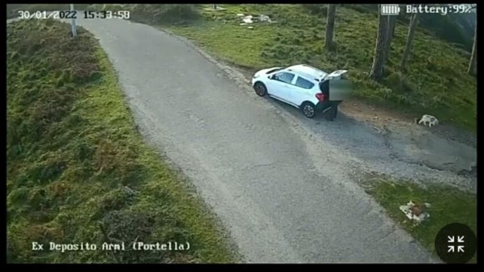 L’uomo giunto sul posto a bordo della sua auto, si è prima liberato del sacchetto di spazzatura gettandolo tra la vegetazione e poi, come se nulla fosse, ha aperto il cofano della vettura ed afferrando un cane di media taglia, di colore bianco con delle chiazza scure sui fianchi, lo ha fatto scendere dall’auto gettandogli appresso la sua coperta. Il soggetto non si è nemmeno preoccupato di lasciare cibo e acqua, ha chiuso il cofano ed accertatosi che il cane non si fosse riavvicinato all’auto è partito allontanandosi definitivamente.