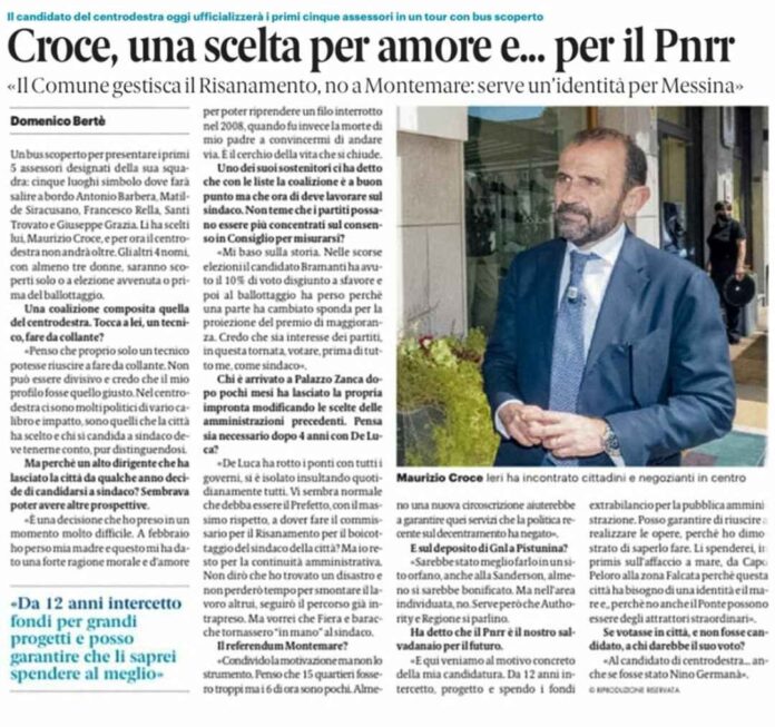 «Ma perchè un alto dirigente che ha lasciato la città da qualche anno decide di candidarsi a sindaco?». Lo hanno chiesto a Maurizio Croce (il candidato del centrodestra di Messina) i giornalisti della Gazzetta del Sud, in una intervista pubblicata nelle scorse ore.