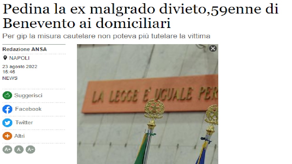 Malgrado fosse già destinatario di un divieto di avvicinamento emesso in quanto accusato di maltrattamenti, ha continuato a vessare la ex con appostamenti sotto casa, pedinamenti e contatti tramite social network: il gip di Benevento, su richiesta dei magistrati della Procura di sede, ha disposto gli arresti domiciliari per un 59enne del luogo