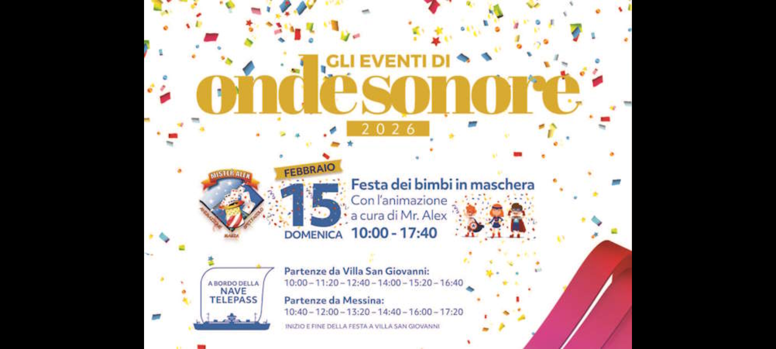 Maschere, animazione e tanto divertimento per i più piccoli: domenica 15 febbraio, a partire dalle ore 10:00, la nave “Telepass” di Caronte & Tourist ospiterà “Carnevale in Nave”, una festa in maschera navigante sullo Stretto di Messina dedicata ai bambini.
