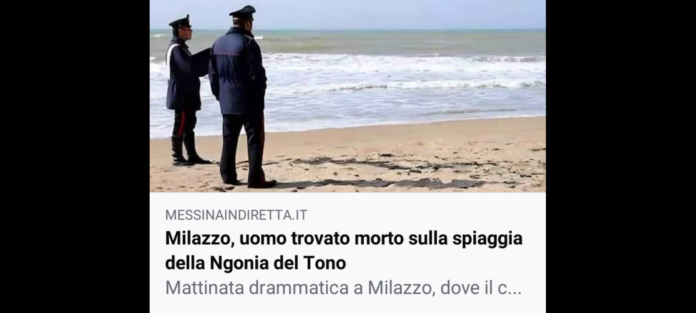 Mattinata drammatica a Milazzo, dove è stato rinvenuto il corpo senza vita di un uomo sulla spiaggia della Ngonia del Tono… a fare la macabra scoperta è stato un passante: il cadavere, parzialmente svestito e con addosso una camicia, giaceva sull’arenile.