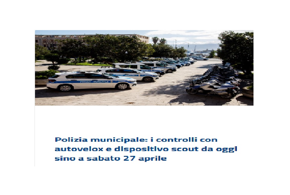 Messina: da oggi, lunedì 22 e fino a sabato 27 aprile 2024, verranno attuati i servizi di controllo della velocità con autovelox e quelli di rilevamento delle infrazioni stradali attraverso il sistema “scout”