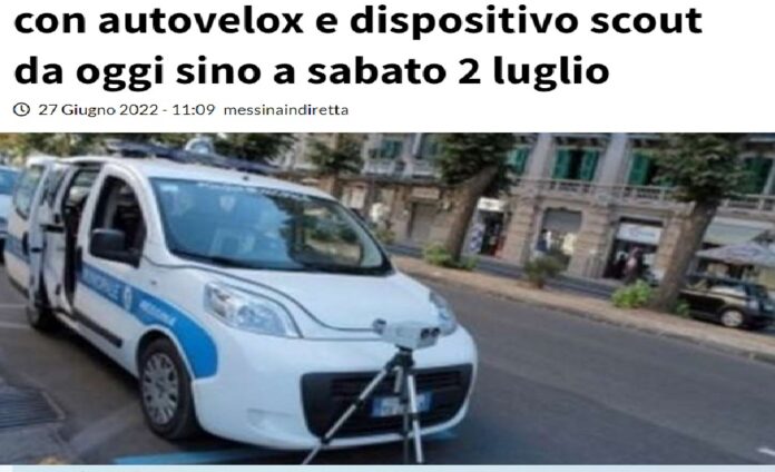 Il controllo con autovelox interesserà la Strada Statale 114 a Galati e Giampilieri; la Strada Statale 113 a Rodia, San Saba, Spartà e Casabianca; il viale Gazzi; e le vie Garibaldi, Padre Ruggeri e Consolare Pompea. Il dispositivo “scout” monitorerà la Strada Statale 114, nel tratto tra il bivio Zafferia e la rotatoria “Alfio Ragazzi”; via Marco Polo; viale S. Martino, da villa Dante a piazza Cairoli; via Industriale (tratto Samperi – S. Cecilia); via La Farina, tra le vie S. Cosimo e Cannizzaro; piazza Duomo (isola pedonale); viale della Libertà, tra Giostra e Prefettura e tra rotatoria Annunziata e Giostra; viale Boccetta, dal corso Garibaldi al viale Principe Umberto; corso Garibaldi, nel tratto Prefettura – Cairoli; via T. Cannizzaro, tra il corso Cavour e il viale Italia; e piazza della Repubblica.