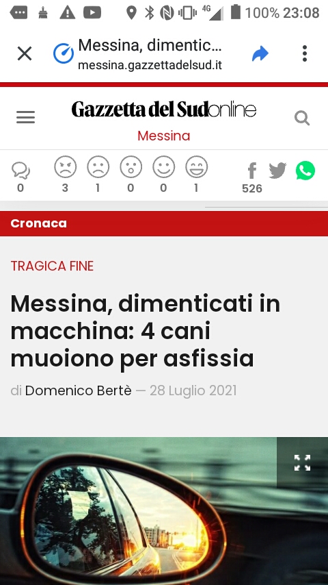 Nel pomeriggio di oggi, sono stati trovati chiusi all’interno di una autovettura. Si tratta di 4 cani, che purtroppo sono morti tutti. Il rinvenimento degli esemplari, e’ stato fatto grazie ad una segnalazione giunta alla Centrale operativa della Polizia Municipale nella quale si spiegava che in via Ariosto a Messina nei pressi dello Stadio Giovanni Celeste in una macchina vi erano quattro cagnolini morti.