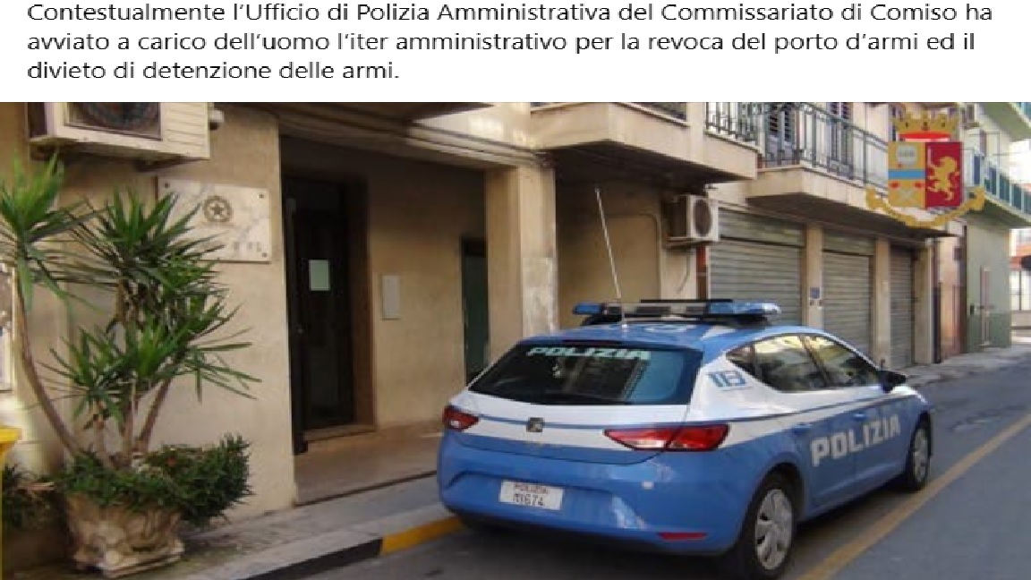 Contestualmente l’Ufficio di Polizia Amministrativa del Commissariato di Comiso ha avviato a carico dell’uomo l’iter amministrativo per la revoca del porto d’armi ed il divieto di detenzione delle armi.