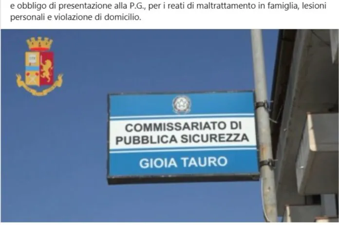 L’attività info-investigativa è stata quindi effettuata dal personale del Commissariato di P.S. di Gioia Tauro ed all’esito delle indagini, la Procura della Repubblica di Palmi ha emesso un provvedimento cautelare di ‘Divieto di avvicinamento’ alla parte offesa e obbligo di presentazione alla P.G., per i reati di maltrattamento in famiglia, lesioni personali e violazione di domicilio.