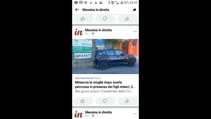 I Carabinieri della Stazione di Graniti, allertati da una telefonata pervenuta al 112 che segnalava una lite in famiglia, in poco tempo hanno raggiunto l’appartamento indicato, sorprendendo l’uomo in flagranza di reato mentre minacciava la moglie, dopo averla percossa in presenza dei figli minori.