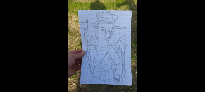 Il figlio del proprietario, come gesto di gratitudine per il ritrovamento, ha disegnato l’effigie di San Michele Arcangelo, patrono della Polizia di Stato, su un foglio di quaderno e su una pietra del fondo dove l’auto è stata trovata.