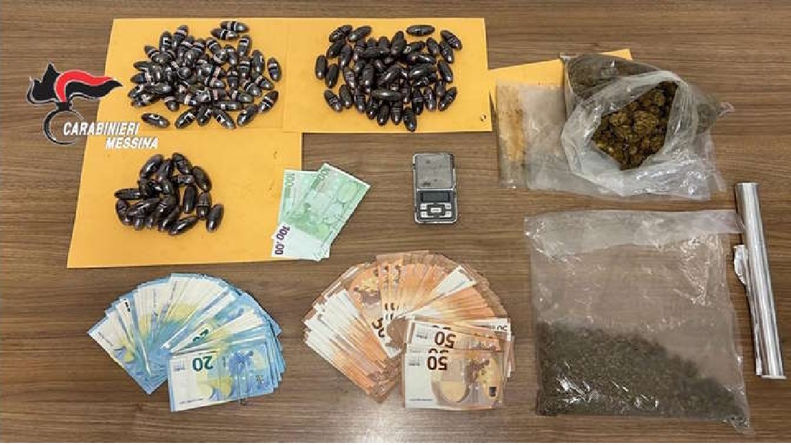 Il materiale rinvenuto è stato sequestrato unitamente allo stupefacente, che sarà inviato ai Carabinieri del RIS di Messina per le analisi tecniche di laboratorio al fine di stabilirne il grado di purezza e il numero di dosi medie ricavabili. Attesi i consistenti quantitativi e la varietà dello stupefacente, il rinvenimento di materiale idoneo alla pesatura, suddivisione e confezionamento in singole dosi, nonché della cospicua somma di denaro contante rinvenuta, il 38enne è stato arrestato in flagranza di reato detenzione ai fini di spaccio di sostanze stupefacenti e sottoposto agli arresti domiciliari, in attesa di essere condotto dinnanzi al Giudice del Tribunale di Messina per essere giudicato con rito direttissimo nella mattinata di lunedì.