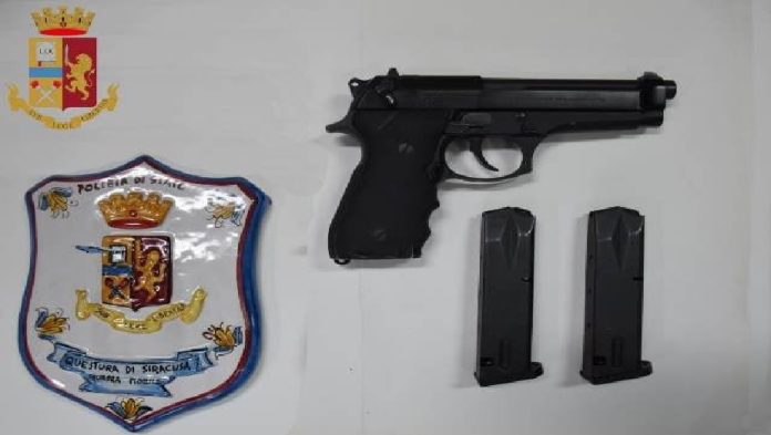 Nel corso di predisposti servizi di Polizia, finalizzati al contrasto della criminalità, agenti della Squadra Mobile di Siracusa hanno arrestato un uomo di 33 anni, conosciuto alle forze di Polizia, perché già sottoposto alla misura cautelare degli arresti domiciliari e una donna di 36 anni, di nazionalità polacca, in quanto colti nella flagranza del reato di detenzione di arma tipo guerra (una pistola Beretta FS/92 cal. 9).