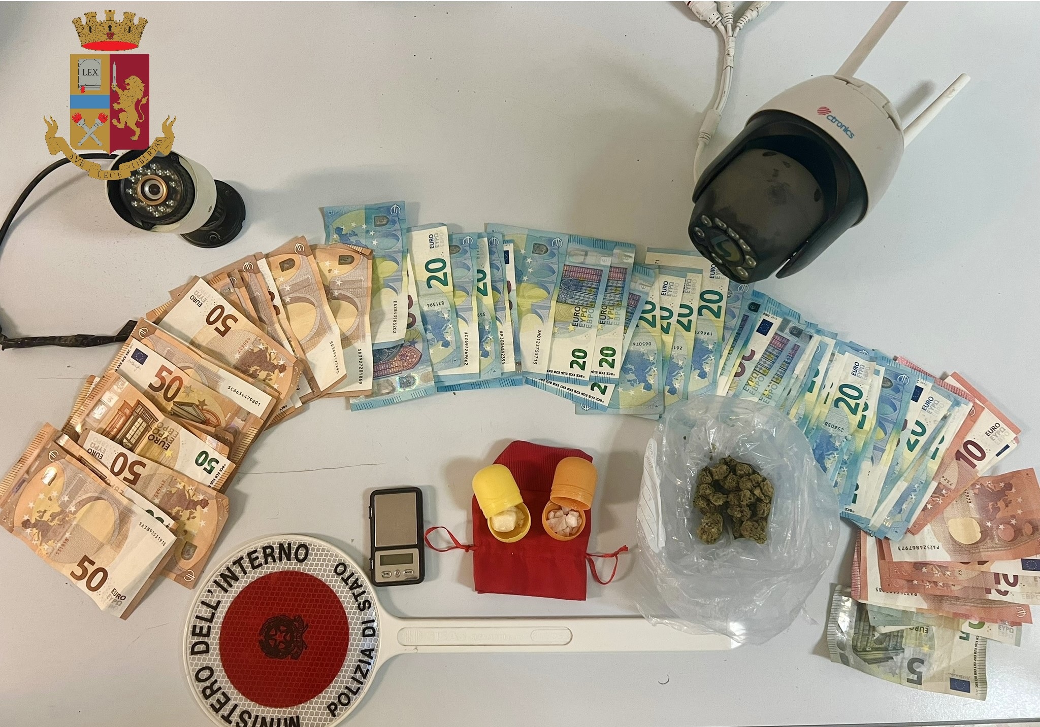 Inutile il maldestro tentativo di liberarsi della droga. Quando i Poliziotti hanno bussato alla porta di casa, la venticinquenne ha lanciato la sostanza dal balcone di casa sul tetto dell’immobile adiacente. Da quella parte dell’immobile, però, ad attenderla vi erano altri Poliziotti impegnati nei controlli lungo il perimetro dello stabile per sorvegliare ogni possibile via di fuga. Oltre alla droga, rinvenuti e sequestrati altresì un bilancino di precisione e più di mille euro, ritenuti probabile provento di spaccio, nonché l’intero impianto di videosorveglianza dotato di due telecamere posizionate all’esterno dello stabile, entrambe collegate alla tv del salone di casa.