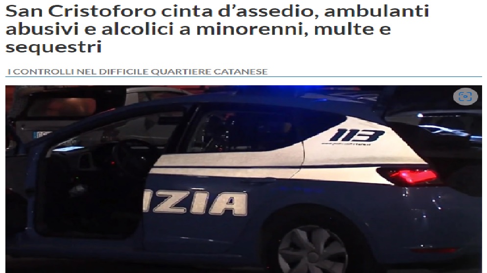 Nel mirino ambulanti abusivi e pregiudicati nel vasto quartiere catanese di San Cristoforo: in questi ultimi giorni la polizia di Stato ha focalizzato l’attenzione svolgendo una serie di servizi collegati ai moduli operativi Cit, il controllo integrato del territorio, nella vasta area urbana di competenza del commissariato di zona.