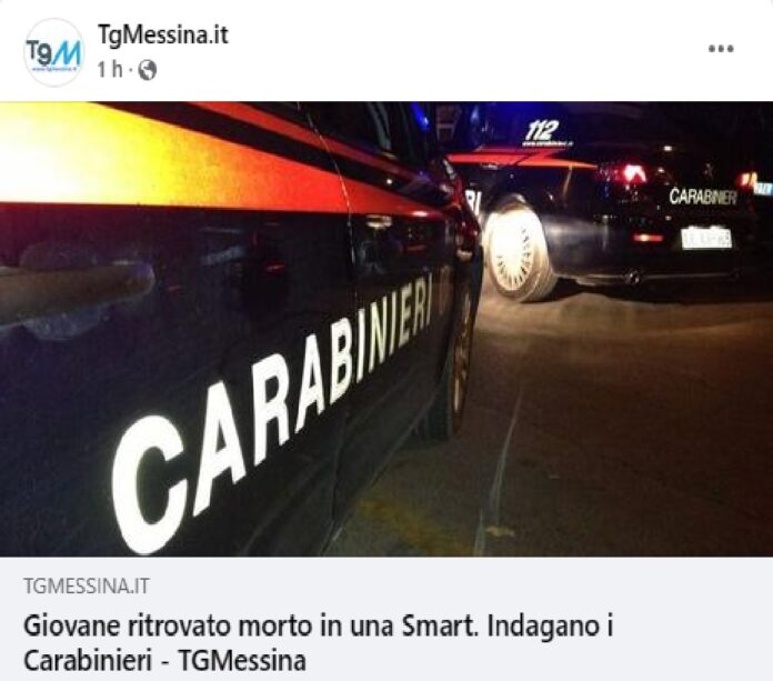 Nel pomeriggio di ieri 25 giugno 2023 nei pressi della Chiesa del villaggio Zafferia a Messina in un piccolo vallone è stato rinvenuto il corpo senza vita ed in stato di avanzata decomposizione… di un giovane 28enne… all’interno di una Smart di colore blu.