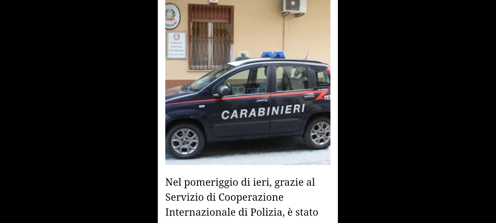 L’estradizione è avvenuta in esecuzione del mandato di arresto europeo emesso dalla Procura della Repubblica presso il Tribunale di Patti, a firma di Angelo Vittorio Cavallo. Il provvedimento è stato emesso dopo un’intensa attività di ricerca internazionale condotta dalla Stazione Carabinieri di San Piero Patti, che era stata delegata per l’esecuzione dell’ordine di carcerazione.