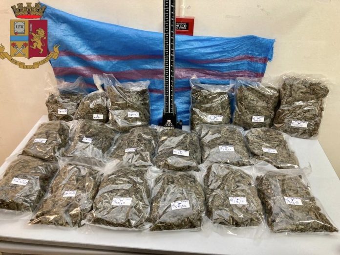 Al conseguente controllo, si è mostrato particolarmente nervoso e non ha saputo fornire indicazione alcuna su dove si stesse recando, né sul motivo per cui stesse correndo. Ne è conseguita la perquisizione presso l’abitazione dell’uomo, che è stato trovato in possesso di poco più di 9 chilogrammi di sostanza stupefacente del tipo “marijuana”, occultata all’interno di un borsone nascosto all’interno di un mobile nella camera da letto.