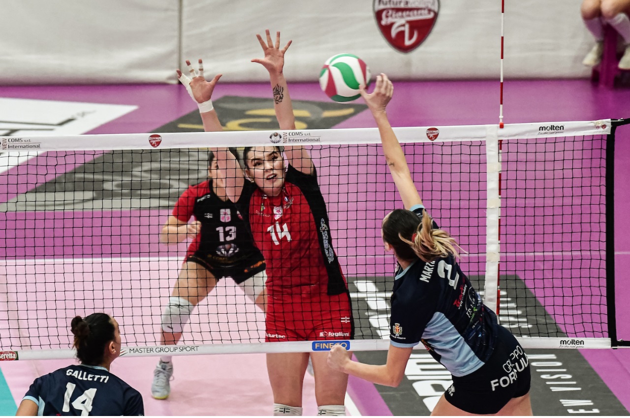 E’ il momento di Kelsie Payne; l’americana mette a terra due palloni incredibili e Messina vola a più quattro (10 -14). Busto, un passo alla volta, risale grazie a Zanette, ma soprattutto a Cvetnic (2) e Conceicao (2) (15-16). Martinelli in attacco tiene avanti Messina, ma Zanette risponde con una bordata da posto due (17-18). Messina c’è: Modestino in fase offensiva e Payne a muro in zona 3 costringono coach Amadio a chiamare il primo time-out (17-20). Si rientra in campo e Modestino piazza ancora un muro che sveglia Busto; break di sei punti per le cocche in cui ci mettono le mani pesanti Cvetnic, Zanette e Furlan (23-21). Payne in appoggio e Battista al servizio ritrovano la momentanea parità (23-23); a chiudere il parziale ci pensano Zanette e un errore della statunitense (25-23) in un finale combattuto. Migliori realizzatrici del set Payne, Cvtnic e Zanette con 6 punti; 7 errori per parte. Nel secondo parziale, sestetti confermati per le due formazioni.
