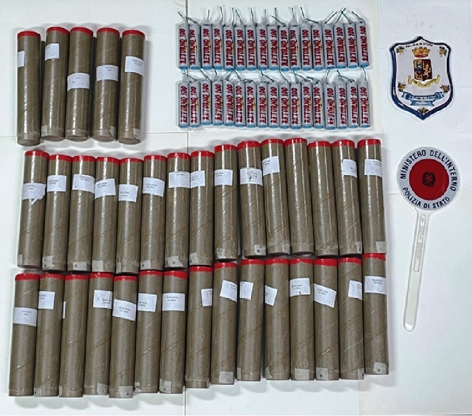 L’UOMO, A SEGUITO DI PERQUISIZIONE DOMICILIARE, È STATO TROVATO IN POSSESSO DI 34 CANDELOTTI ESPLOSIVI (DEL PESO NETTO DI 2100 GRAMMI) NASCOSTI ALL’INTERNO DI UN DEPOSITO