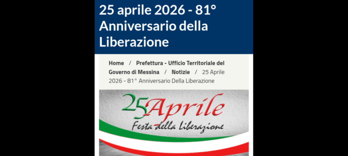Nella giornata di oggi, sabato 25 aprile, in occasione della ricorrenza dell’81° Anniversario della Liberazione, nella Piazza Unione Europea di questo Capoluogo (Messina), alle ore 10:00, avrà luogo una cerimonia commemorativa nel corso della quale si procederà alla deposizione di due corone d’alloro presso il Monumento ai Caduti.