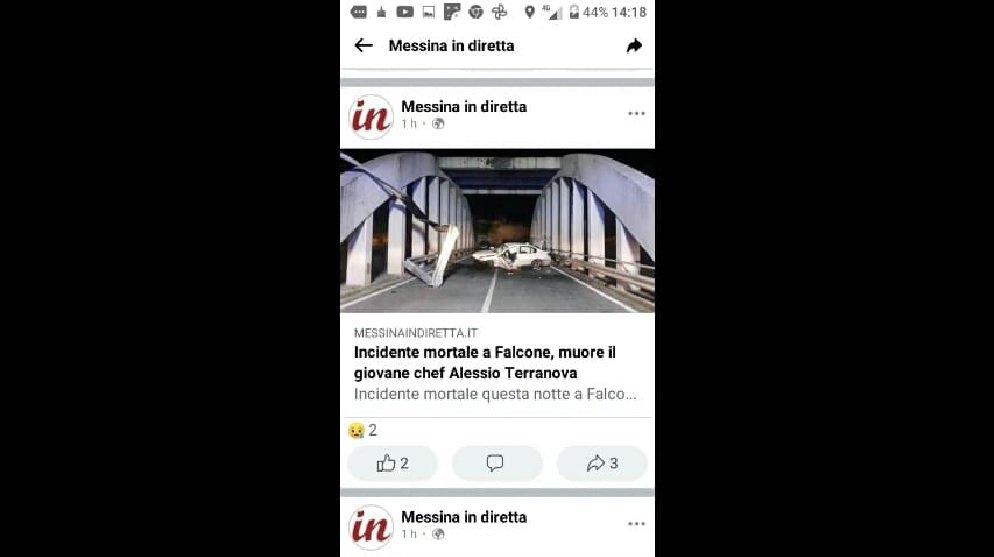 Nella notte fra venerdi’ 11 febbraio e la odierna giornata, a Falcone (un Paese del messinese) si è verificato un incidente mortale nel quale ha perso la vita l’apprezzato chef 37enne Alessio Terranova. L’incidente è avvenuto sulla Strada Statale 113, sul ponte di Oliveri.
