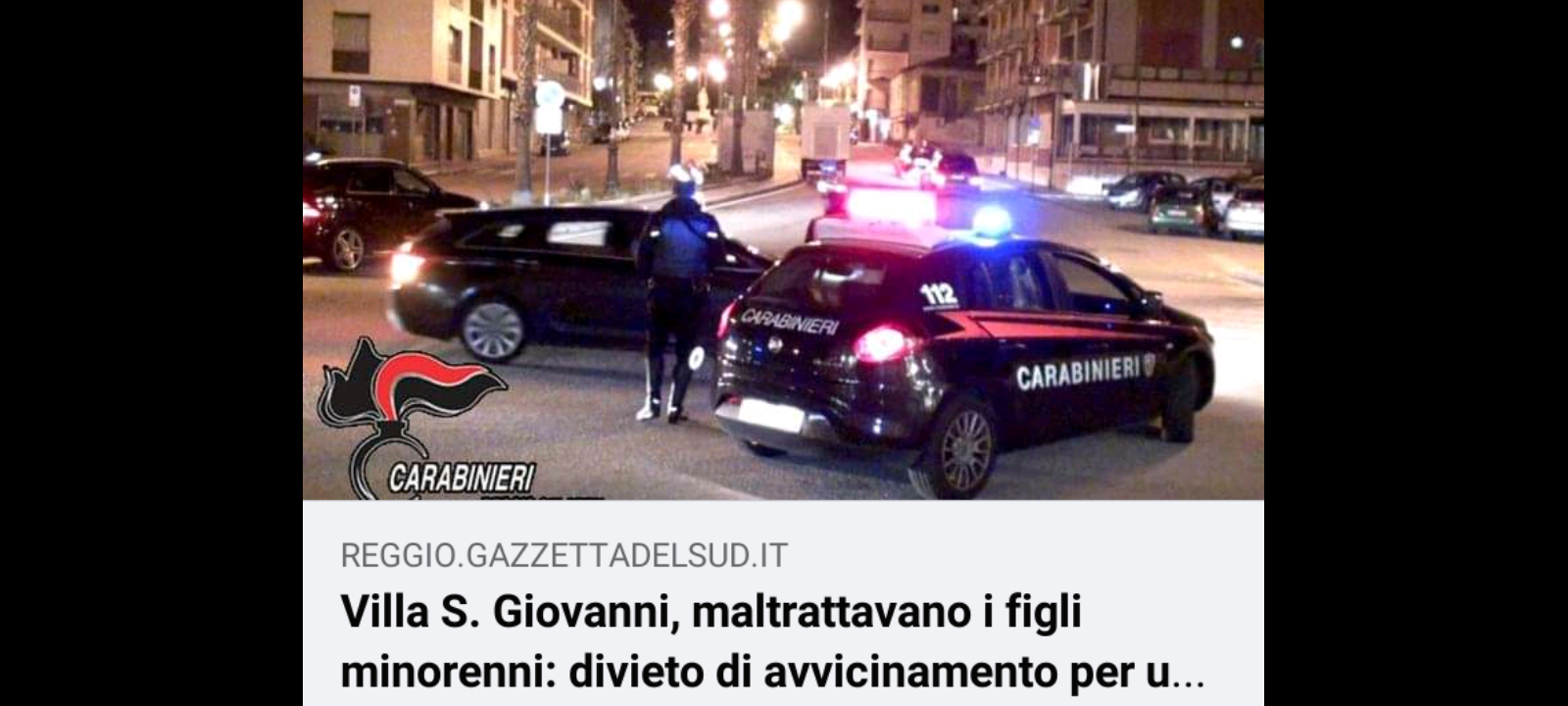 L’indagine dei Carabinieri coordinata dal Procuratore della Repubblica di Reggio Calabria, ha quindi trovato il suo epilogo nell’esecuzione dei 2 provvedimenti cautelari del divieto di avvicinamento della coppia ai figli, i quali, con l’ausilio dei servizi sociali del Comune di Villa San Giovanni, venivano collocati in idonee strutture protette.