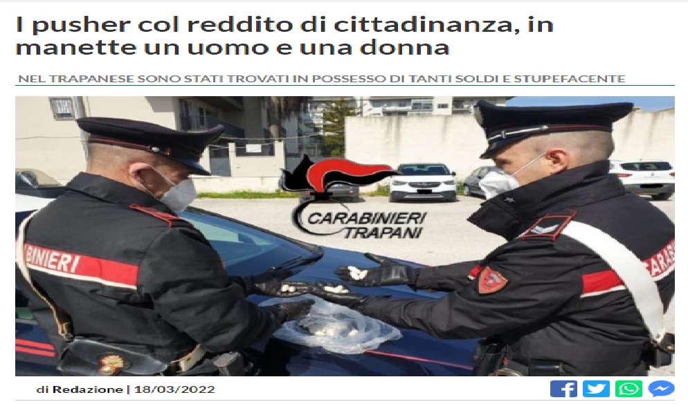 Durante la perquisizione dell’abitazione del 46enne, i carabinieri hanno rinvenuto una modica quantità di eroina e altri 600 euro in contanti. Considerati i gravi indizi raccolti sia nelle pregresse indagini che durante l’operazione antidroga, i carabinieri hanno arrestato entrambe le persone coinvolte. I due, su disposizione del sostituto procuratore del tribunale di Marsala, sono stati rinchiusi nelle camere di sicurezza della compagnia fino alla convalida dell’arresto di fronte al competente giudice per le indagini preliminari che ha applicato nei loro confronti la misura cautelare della custodia cautelare in carcere. Inoltre, in quanto percettori di reddito di cittadinanza, i due arrestati sono stati segnalati per la sospensione del beneficio.