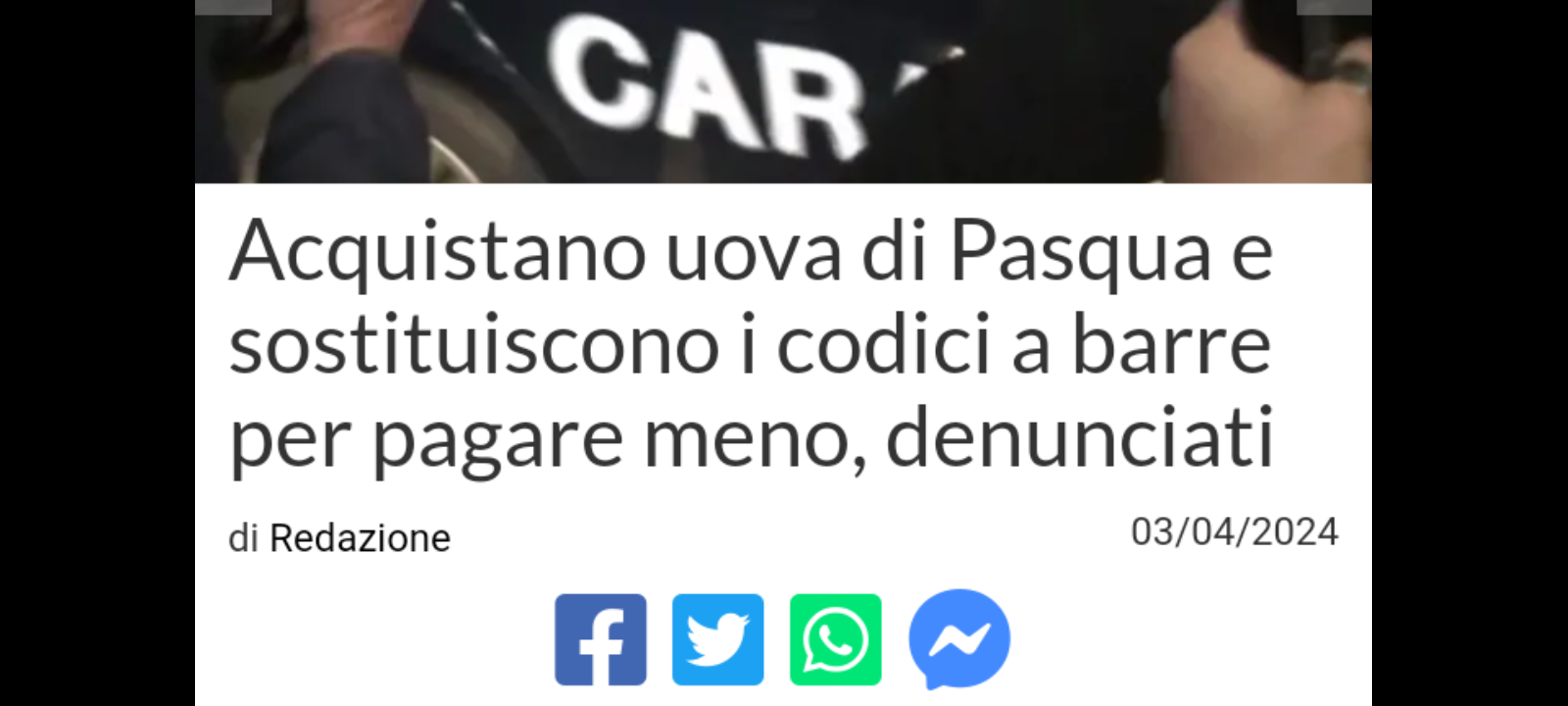 Due persone, con un abile stratagemma, erano riuscite a pagare un prezzo inferiore per 30 uova di Pasqua, sostituendo i codici a barre originali delle uova con quelli di prodotti di minor valore, eludendo il sistema di pagamento automatico e procurando un danno economico al supermercato.