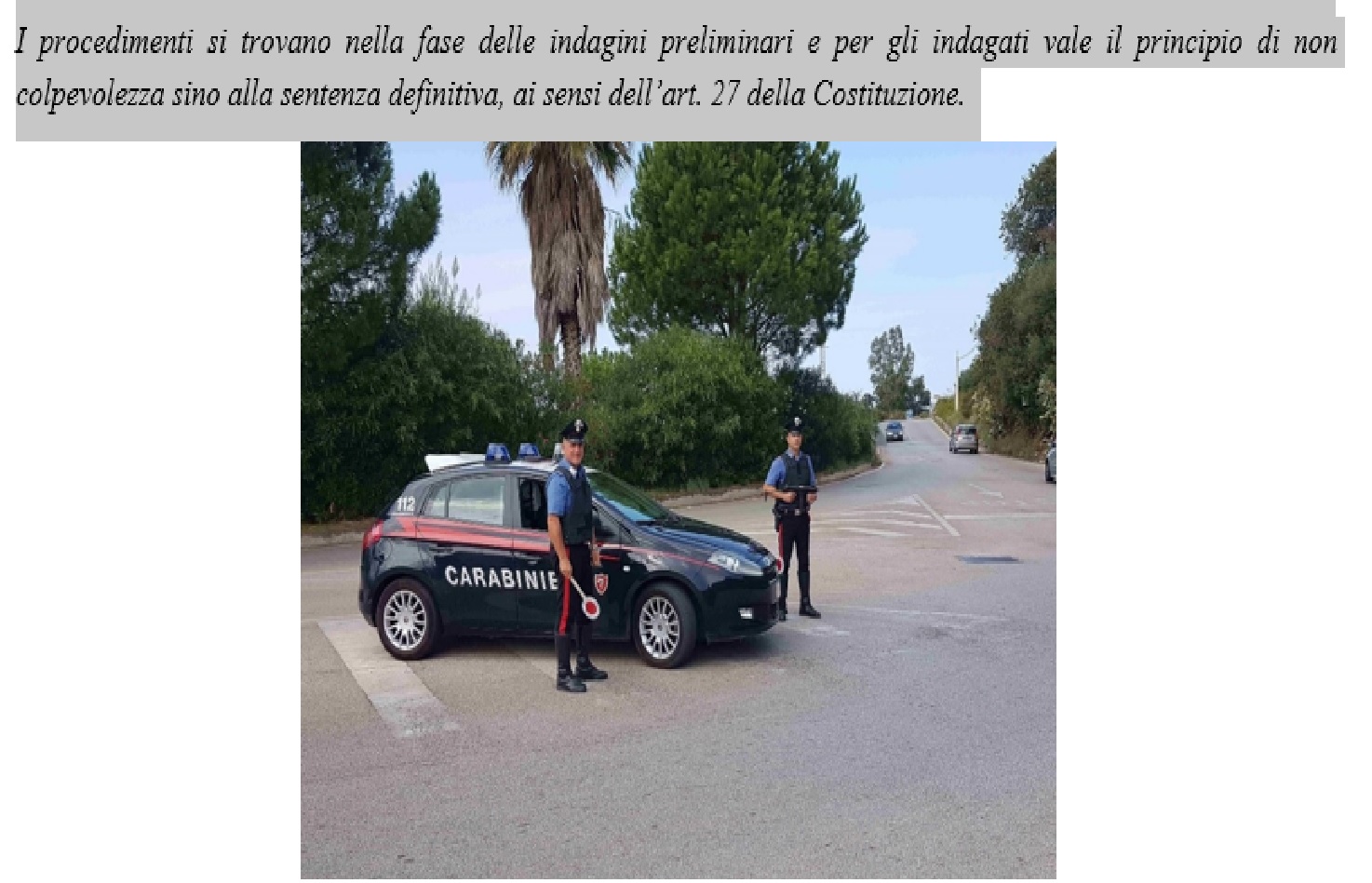 L’uomo è stato pertanto denunciato e sono in corso gli accertamenti per risalire all’esatta provenienza dei prodotti sequestrati. Nell’ambito dell’attività antidroga, invece, due individui sono stati segnalati alla Prefettura di Messina quale assuntori di stupefacenti, poiché trovato in possesso di cocaina e marijuana per uso personale. La sostanza stupefacente è stata sequestrata e inviata ai Carabinieri del R.I.S. per le analisi di laboratorio. I procedimenti si trovano nella fase delle indagini preliminari e per gli indagati vale il principio di non colpevolezza sino alla sentenza definitiva, ai sensi dell’art. 27 della Costituzione.