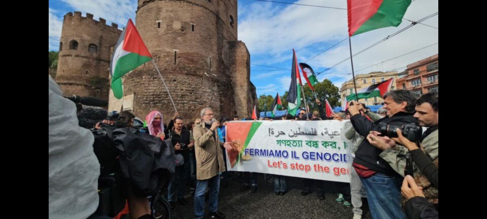 “Qui siamo tantissimi- ha proseguito l’attivista- ma è importante dire cosa succede fuori dalla piazza: compagni bloccati ai caselli, come un pullman fermo al casello di Pisa. Come giovani palestinesi torniamo a ribadire la legittimità della nostra resistenza, a garanzia della dignità del popolo palestinese”.