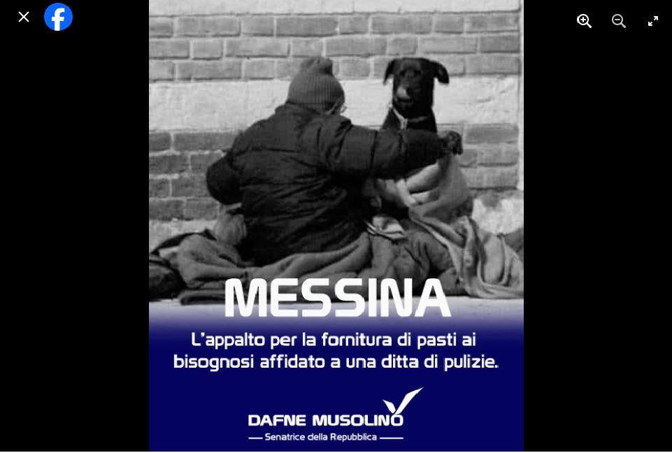 “Non accenna a finire la storia dei pasti serviti dalla Messina Social City ai senza tetto: abbiamo scoperto che il menù ‘fuori dal luogo comune’ consistente in un piatto di pasta fredda con insalata di pomodori e mozzarella in busta, è stata fornita da una azienda di pulizie dalla quale la Social City ha acquistato un servizio di ‘piatti caldi’”. Lo riferisce in data odierna, sui suoi omonimi Spazi Facebook, la senatrice messinese Dafne Musolino appartenente al ‘Gruppo di Italia Viva’ presso ‘Palazzo Madama’ a Roma.
