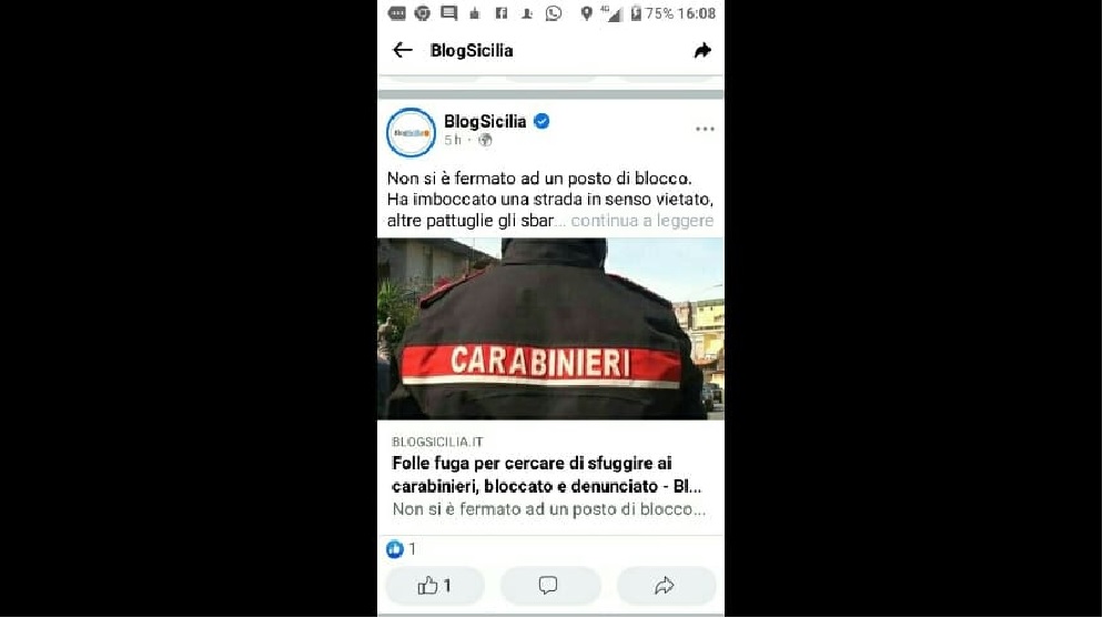 Non si è fermato all’alt dei carabinieri dando vita ad una folle fuga nel centro cittadino di Catania, tra auto e pedoni. Solo l’arrivo di altre pattuglie ha permesso di fermare un giovane ventenne che aveva premuto sull’acceleratore pericolosamente, mettendo in pericolo la vita anche di altri utenti della strada. Per lui una denuncia per resistenza a pubblico ufficiale e una serie di violazioni contestate al codice della strada. Quando i carabinieri lo hanno bloccato e hanno chiesto il motivo di quel gesto lui è rimasto in silenzio.