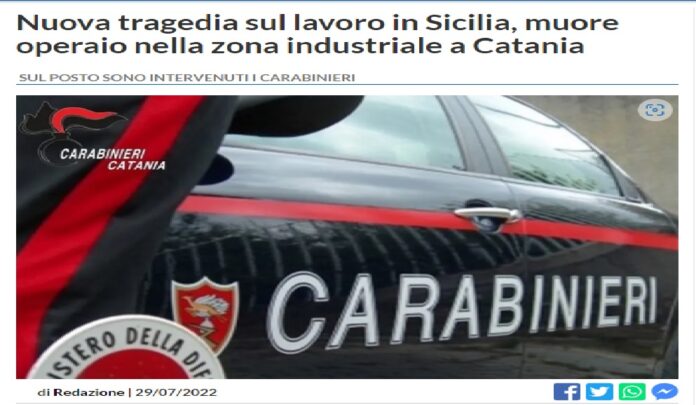 Nuova tragedia sul lavoro in Sicilia: un operaio di 37 anni è morto in un incidente di lavoro avvenuto nel sito della Ecometalli srl, nella zona industriale di Catania. La società si occupa di raccolta e commercio di metalli. Sul posto sono intervenuti i carabinieri. La Procura ha aperto un’inchiesta.