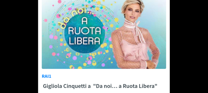 “Da Noi… a Ruota Libera” è un programma realizzato dalla direzione Intrattenimento Day Time in collaborazione con Endemol Shine Italy che racconta la vita artistica e privata di personaggi celebri e non che hanno saputo imprimere un “giro di Ruota” originale e positivo alla propria vita e a quella degli altri compiendo scelte coraggiose e anticonvenzionali. La regia è di Elisabetta Pierelli.