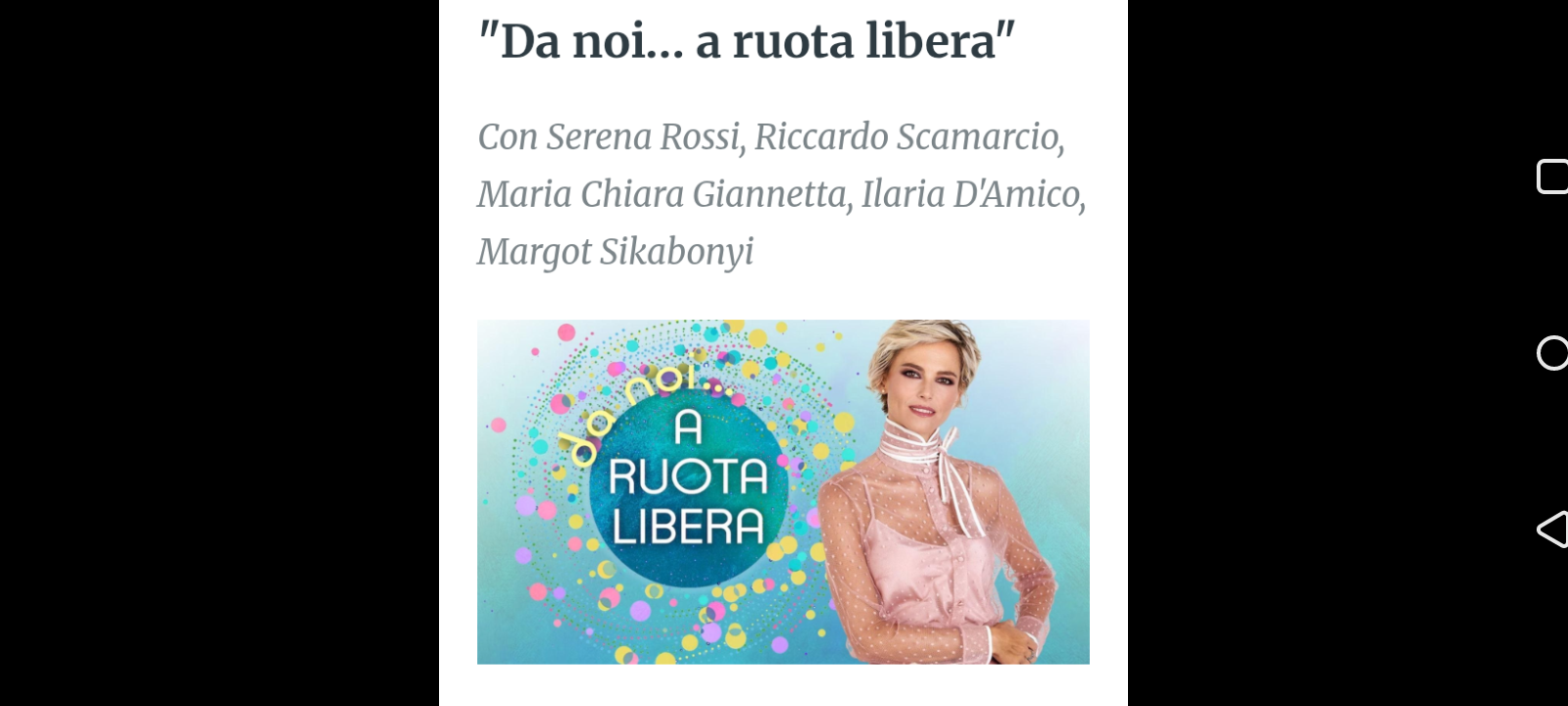 Nuovo appuntamento domenica 16 marzo alle 17.20 su Rai1, con “Da noi… a Ruota Libera”, il programma condotto da Francesca Fialdini, realizzato dalla direzione Intrattenimento Day Time in collaborazione con Endemol Shine Italy.