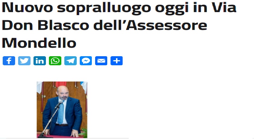 L’Assessore ai Lavori Pubblici Salvatore Mondello ha effettuato stamani un nuovo sopralluogo presso il cantiere della realizzanda Via Don Blasco, al fine di monitorare lo stato dei lavori in corso. Si è potuto constatare come le attività procedano senza indugi, nel rispetto del cronoprogramma previsto.