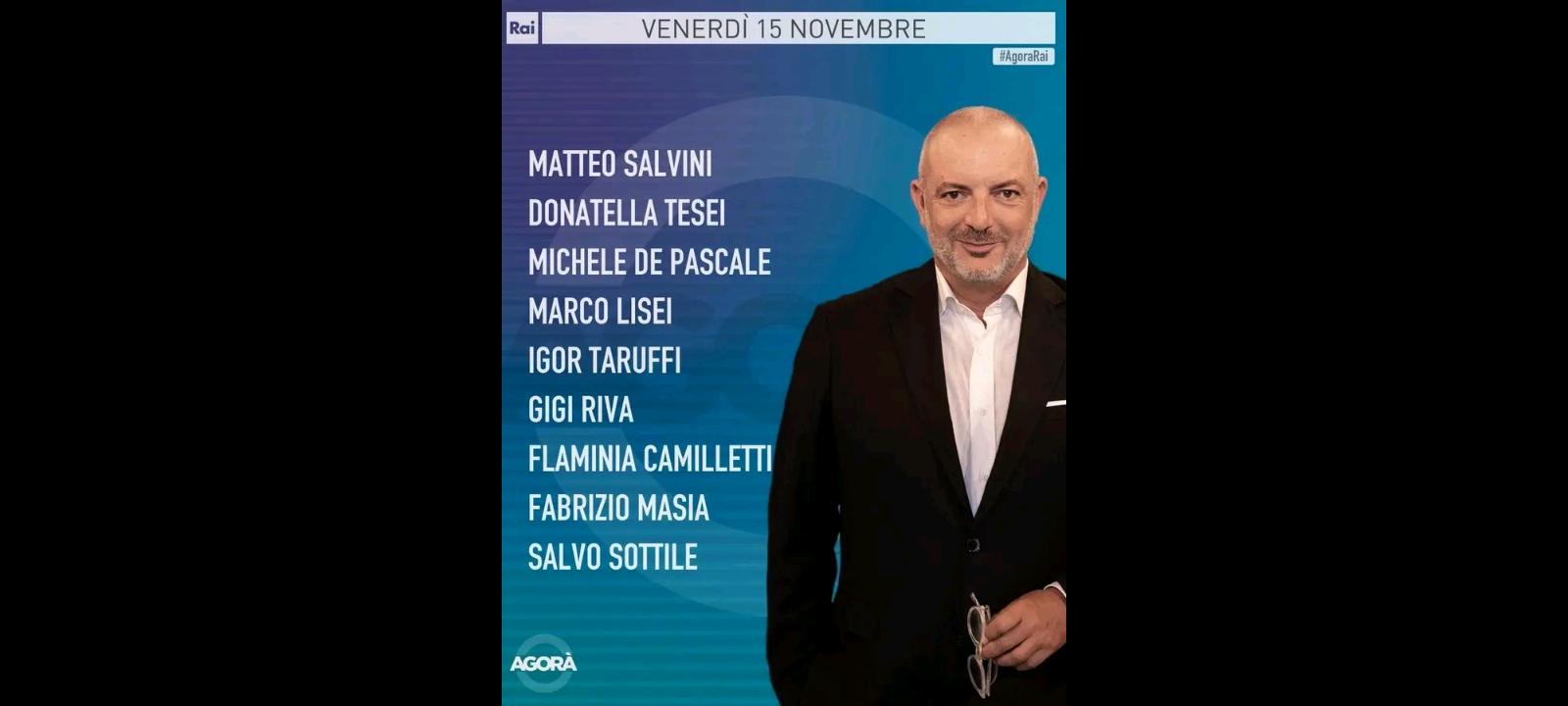 ‘Occhi puntati ancora su Elon Musk, alla luce delle sue parole contro la Magistratura italiana, e sulle reazioni del Presidente della Repubblica Mattarella e della Premier Meloni; lo stallo per le nomine dei vicecommissari in Europa che mette a rischio anche la presidenza della Von der Leyen; il “bonus di Natale” in Manovra; e un’intervista al vicepremier e ministro per le Infrastrutture Matteo Salvini; obiettivo, inoltre, sulle elezioni regionali con le interviste al candidato del centrosinistra per la presidenza dell’Emilia-Romagna, Michele De Pascale, e alla candidata del centrodestra per la presidenza dell’Umbria, Donatella Tesei; tornano, inoltre, come ogni venerdì, i sondaggi di “Agorà”‘. Questi alcuni temi di “Agorà”, che è iniziato in onda venerdì 15 novembre alle 08.00 in diretta su Rai3.