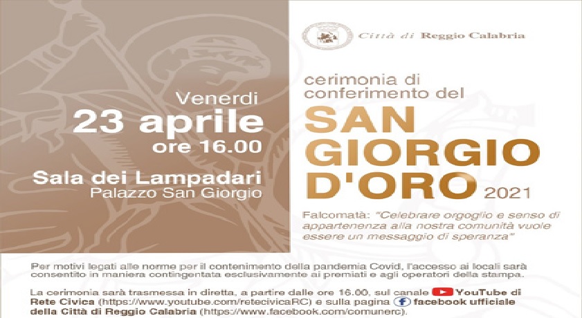 Oggi 23 aprile a Reggio Calabria: si è tenuta alle 16.00…, la cerimonia di conferimento del San Giorgio d’Oro 2021.