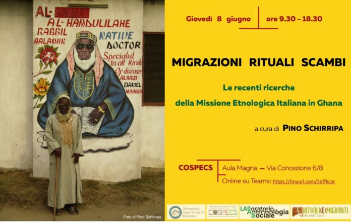 Oggi…, giovedì 8 giugno, presso l’Aula Magna del Dipartimento COSPECS dell’Università di Messina, dalle 9.30 alle 18.30, si è tenuta la Giornata di studi sulla Missione Etnologica Italiana in Ghana organizzata dal Laboratorio di Antropologia Sociale.