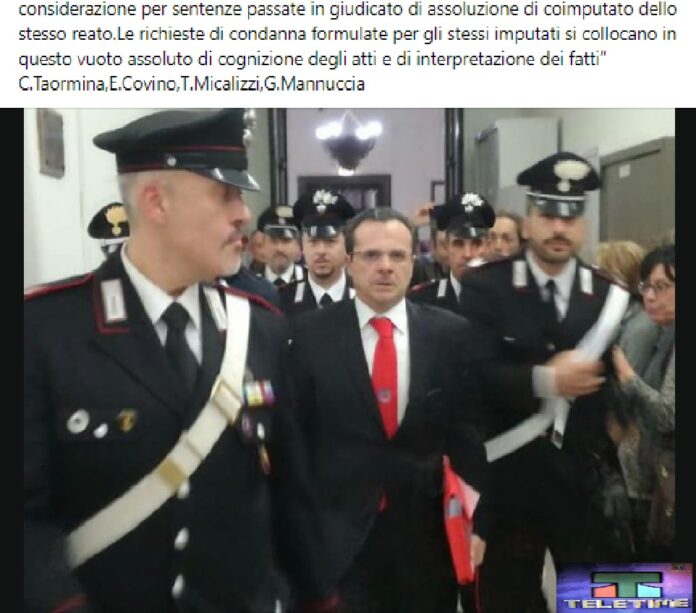 - di seguito si riportano le affermazioni del nostro collegio di difesa… “Il collegio di difesa di Cateno De Luca, Carmelo Satta e Giuseppe Ciatto residui imputati di un processo per presunte violazioni tributarie già assolti in primo grado perché il fatto non sussiste, intendono stigmatizzare il comportamento del procuratore generale platealmente allontanatisi dall’aula appena iniziata la discussione dei difensori degli imputati, per la inconsistenza e astrattezza della requisitoria per essersi intrattenuto prevalentemente su fatti non oggetto di contestazione, dimostrando per il resto ignoranza degli atti processuali e scarsa considerazione per sentenze passate in giudicato di assoluzione di coimputato dello stesso reato. e richieste di condanna formulate per gli stessi imputati si collocano in questo vuoto assoluto di cognizione degli atti e di interpretazione dei fatti! C. Taormina, E. Covino, T. Micalizzi, G. Mannuccia”!