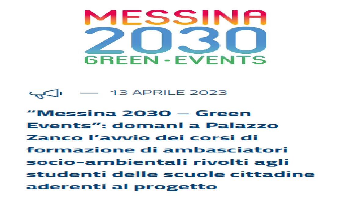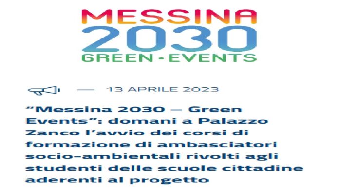 Oggi, venerdì 14, alle ore 9, nel Salone delle Bandiere di Palazzo Zanca, saranno avviati i corsi di formazione per gli ambasciatori socio-ambientali, nell’ambito del progetto “Messina 2030 – Green Events”