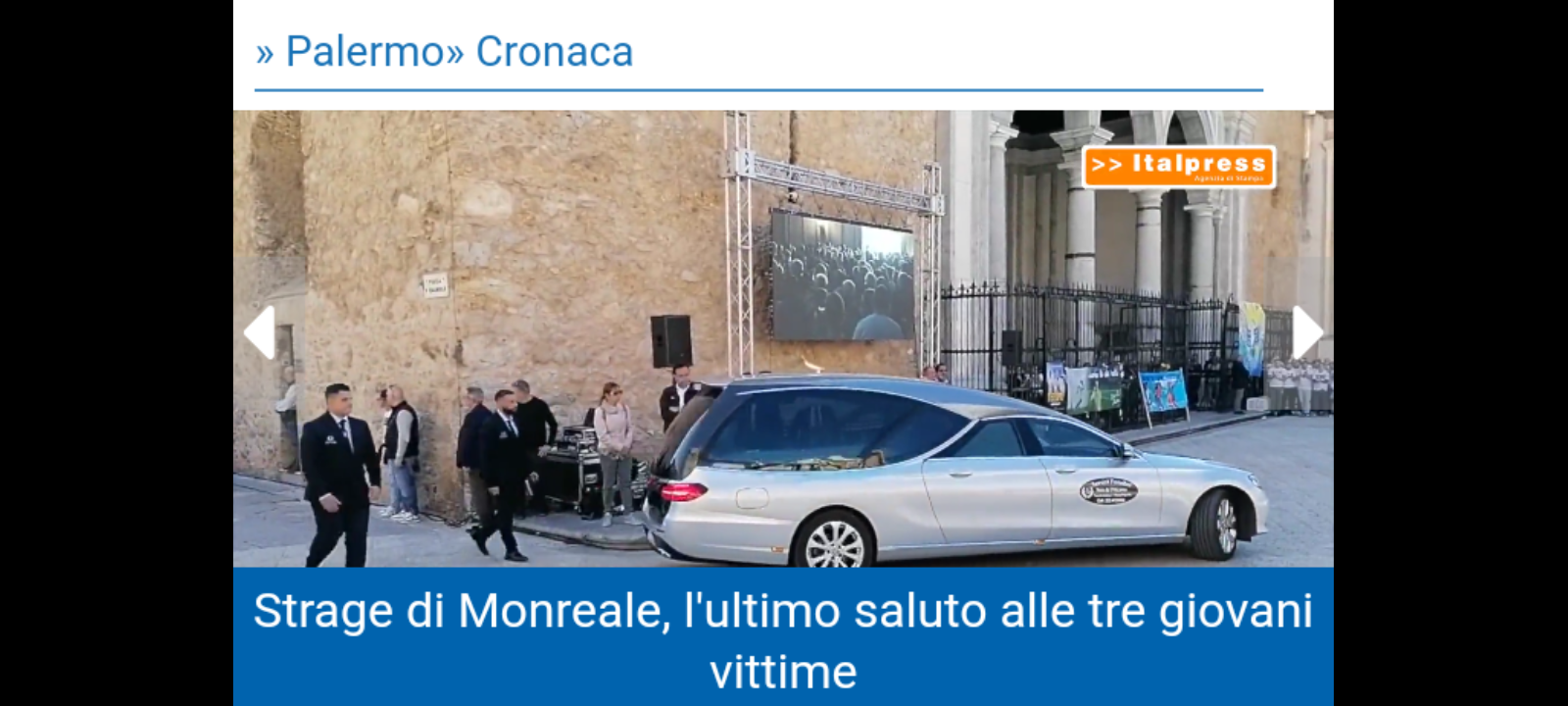 Sostenuti dall’affetto dei loro cari, i parenti delle vittime avanzano lentamente, tra singhiozzi e passi incerti, varcando la soglia della Cattedrale: Monreale si stringe nel dolore, profondamente segnata dalla perdita di tre fratelli… Salvatore, Massimo e Andrea. È il momento della preghiera, ma ancor più della riflessione. La Cattedrale è colma di dolore; nessuno riesce a trovare parole che possano dare un senso a questa tragedia. A guidare l’estremo saluto ai tre giovani è l’arcivescovo di Monreale, Gualtiero Isacchi, che accompagna i familiari in questo difficile e struggente ultimo viaggio.