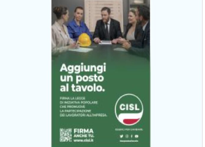 Parte anche a Messina la campagna di raccolta firme sulla proposta di legge di iniziativa popolare della Cisl Nazionale (#unpostoaltavolo), che prevede la partecipazione dei lavoratori alla gestione delle aziende, in attuazione dell’articolo 46 della Costituzione. Il primo banchetto della Cisl Messina sarà venerdì 16 giugno, dalle 8 alle 18 a piazza Cairoli, lato Bar Santoro dove il primo ad apporre la firma sarà il segretario generale Antonino Alibrandi, seguito dalla sua segreteria e dai segretari provinciali delle Federazioni. La proposta di legge di iniziativa popolare prevede dunque la partecipazione dei lavoratori in azienda in tutte le forme, gestionale, finanziaria, organizzativa e consultiva. La raccolta durerà sei mesi, nelle prossime settimane anche i banchetti nella provincia messinese.